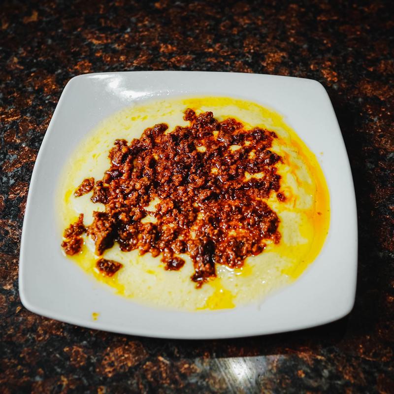 4 corn mini tacos, choice of meat, charro beans, cilantro, grilled onions, and avocado sliced.
